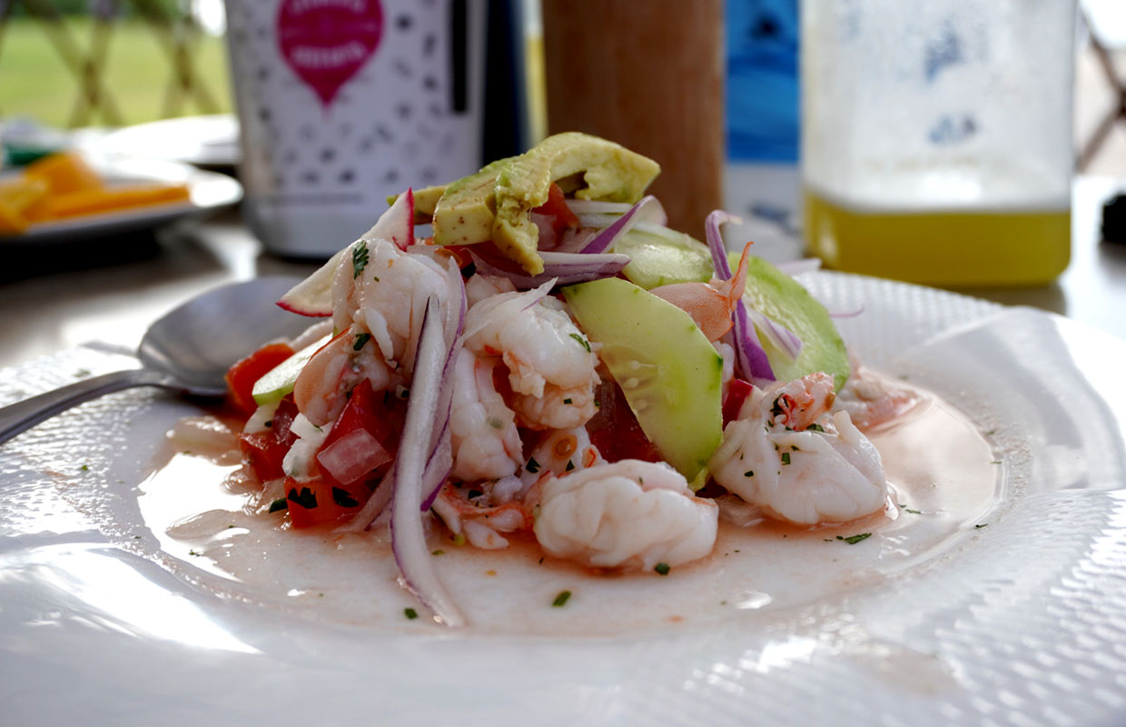 Shrimp Ceviche (tomatoe, onion, lemon, avocado and totopos) $195